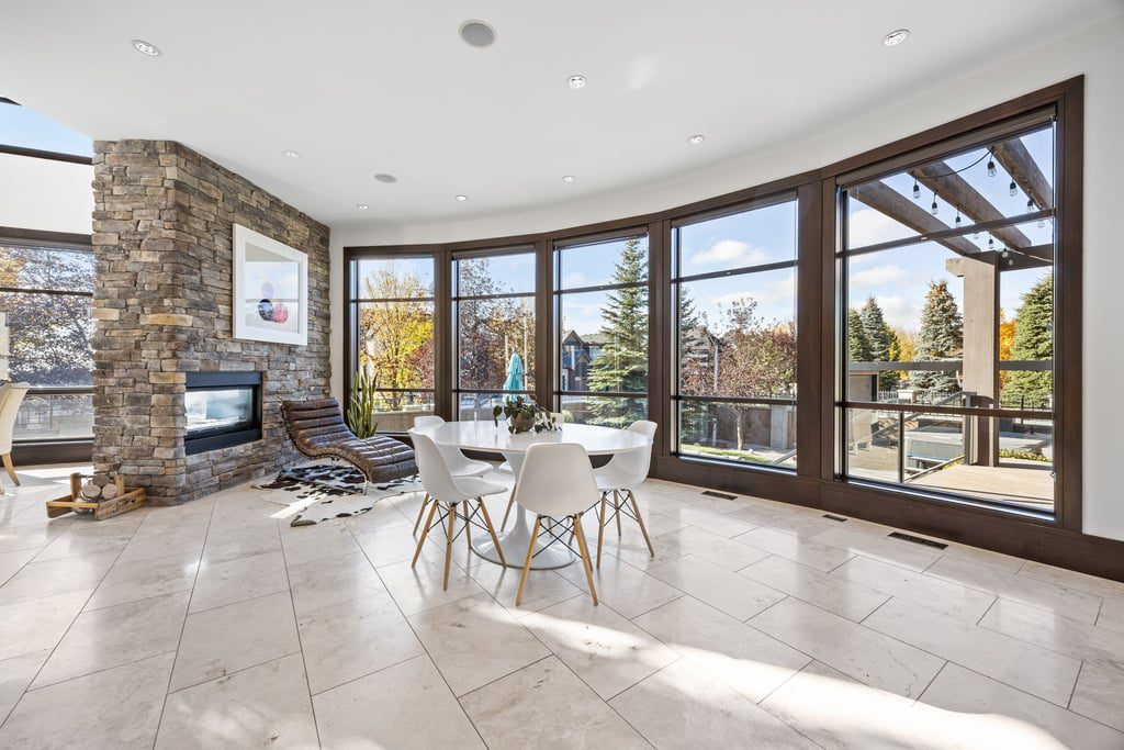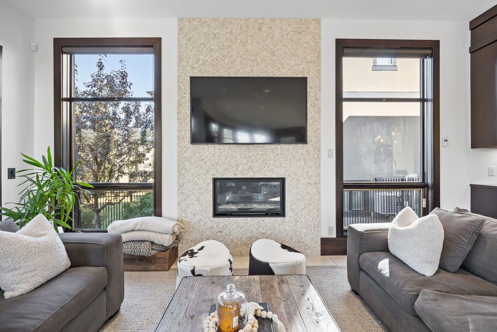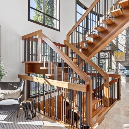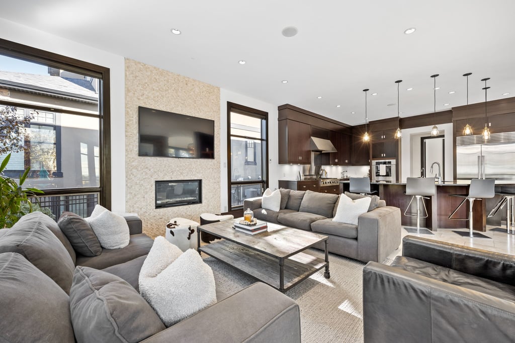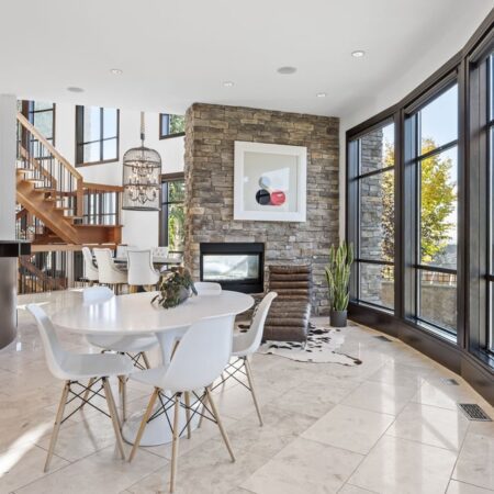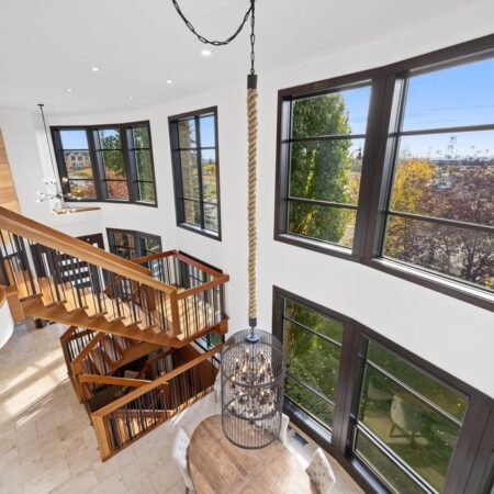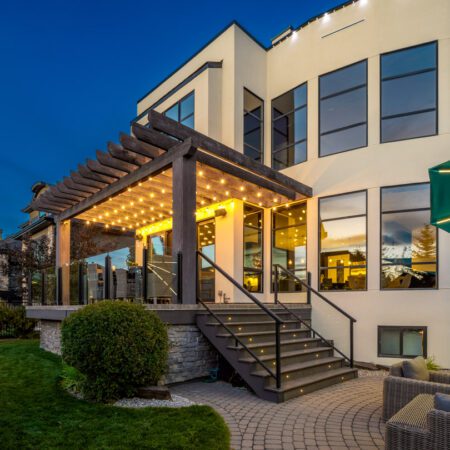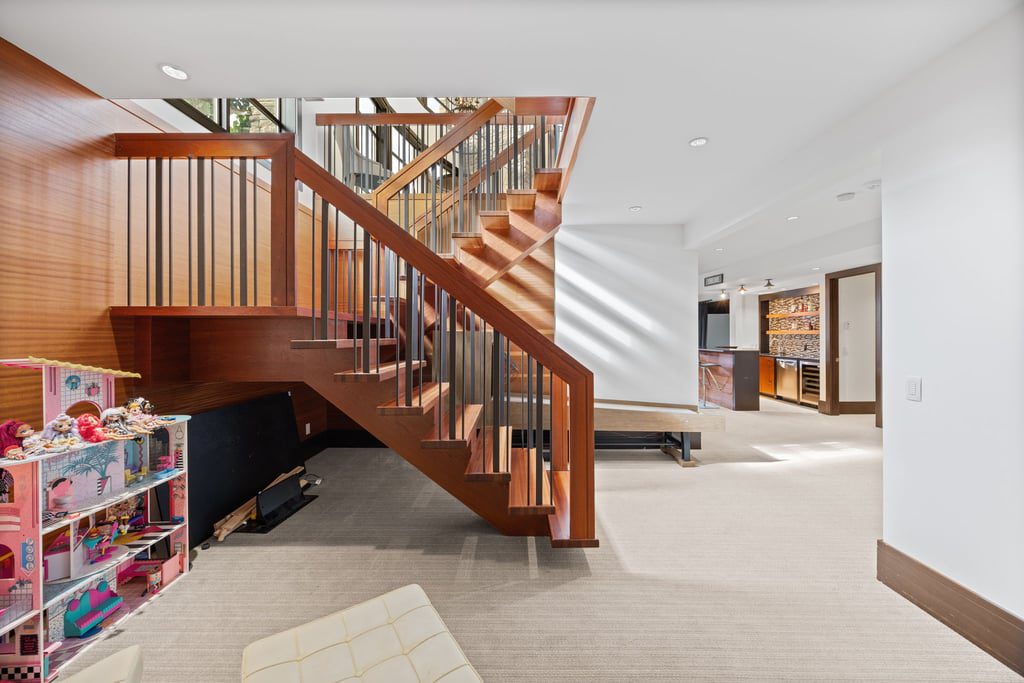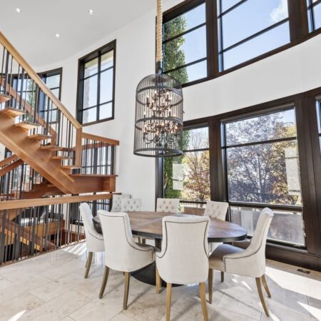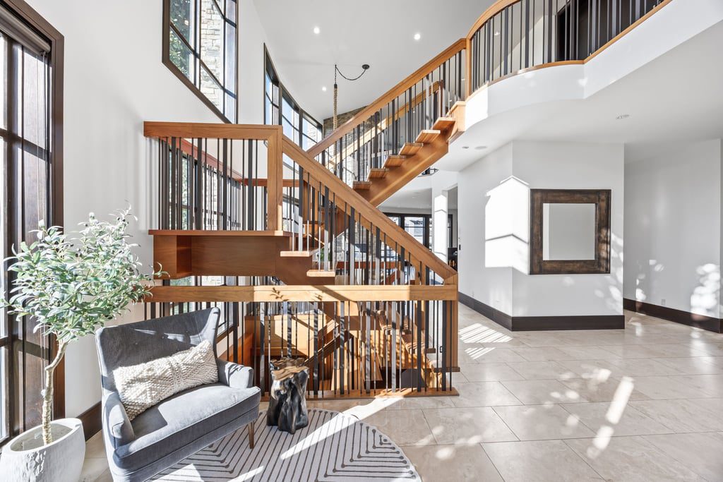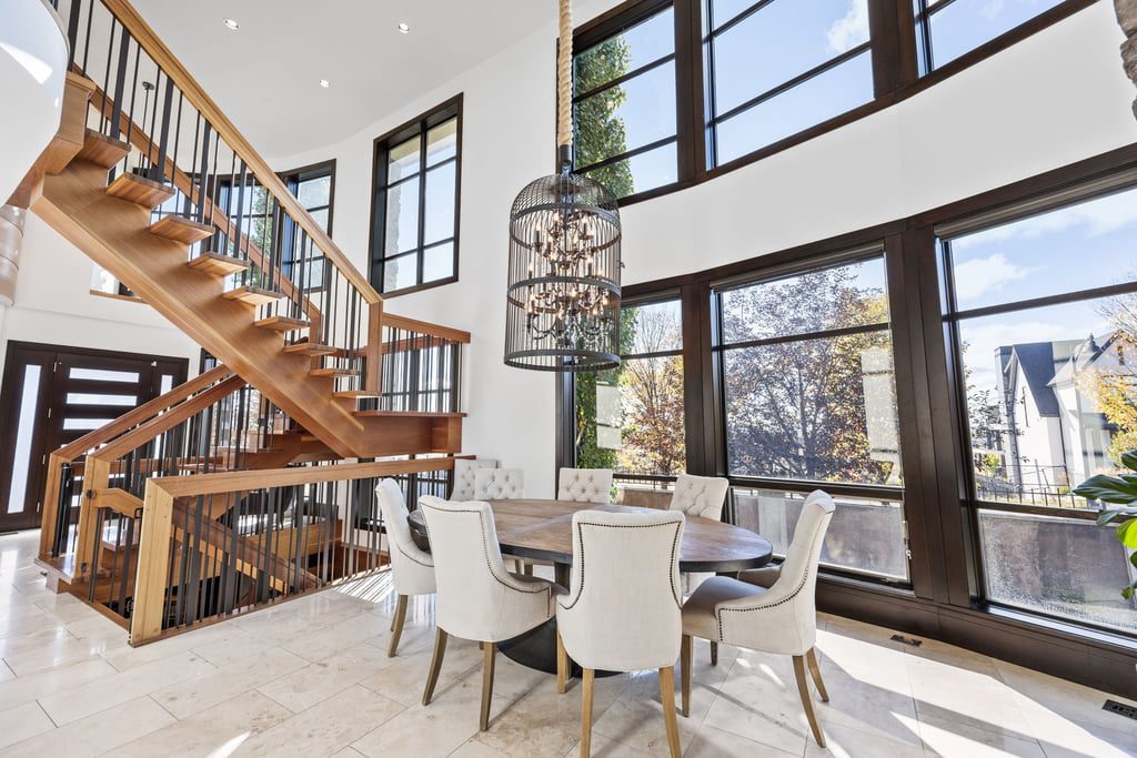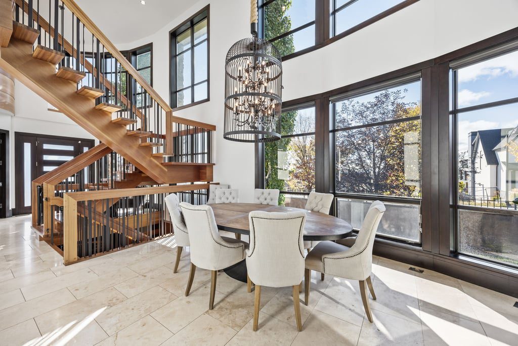Every element has been meticulously curated. Rosewood cabinetry and solid doors, a Jatoba floating staircase, and heated limestone and hardwood floors create a seamless blend of warmth and refinement. Soaring 10-ft ceilings on the main level and 9-ft ceilings on the lower level enhance light and volume, while Montego linear fireplaces bring contemporary ambiance to the living spaces.