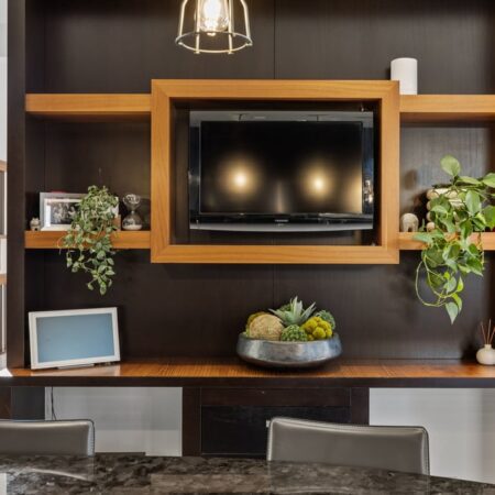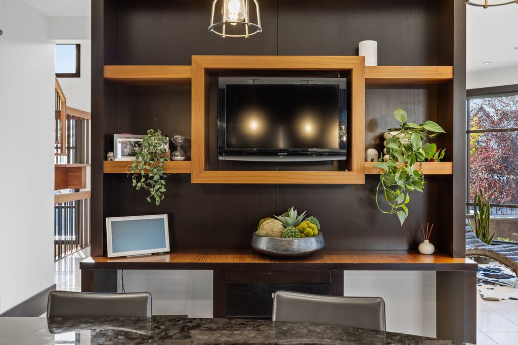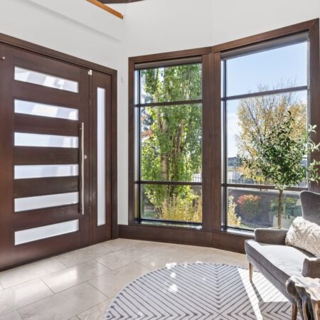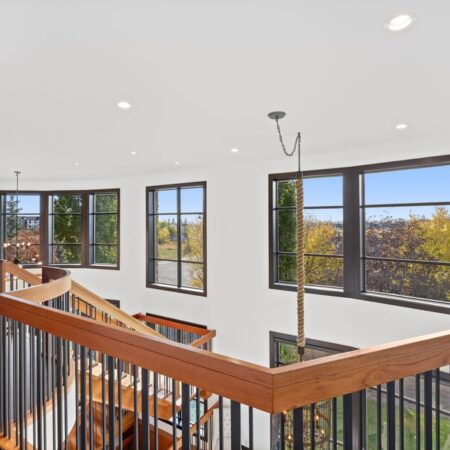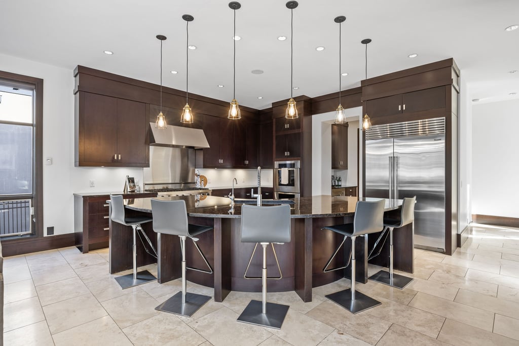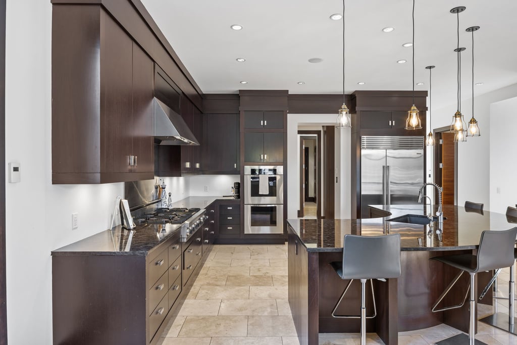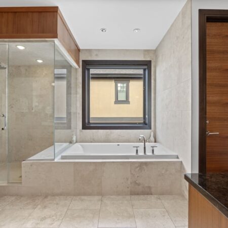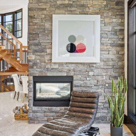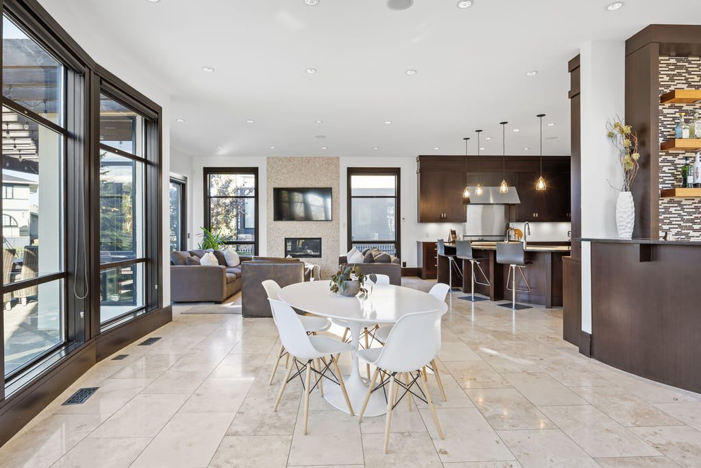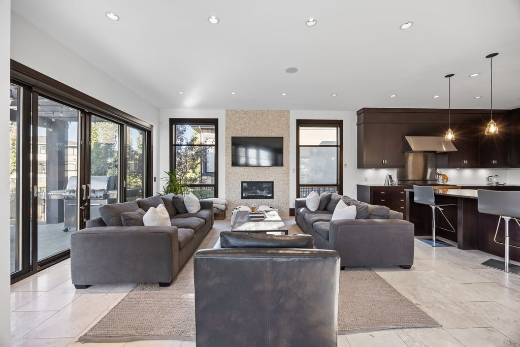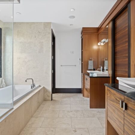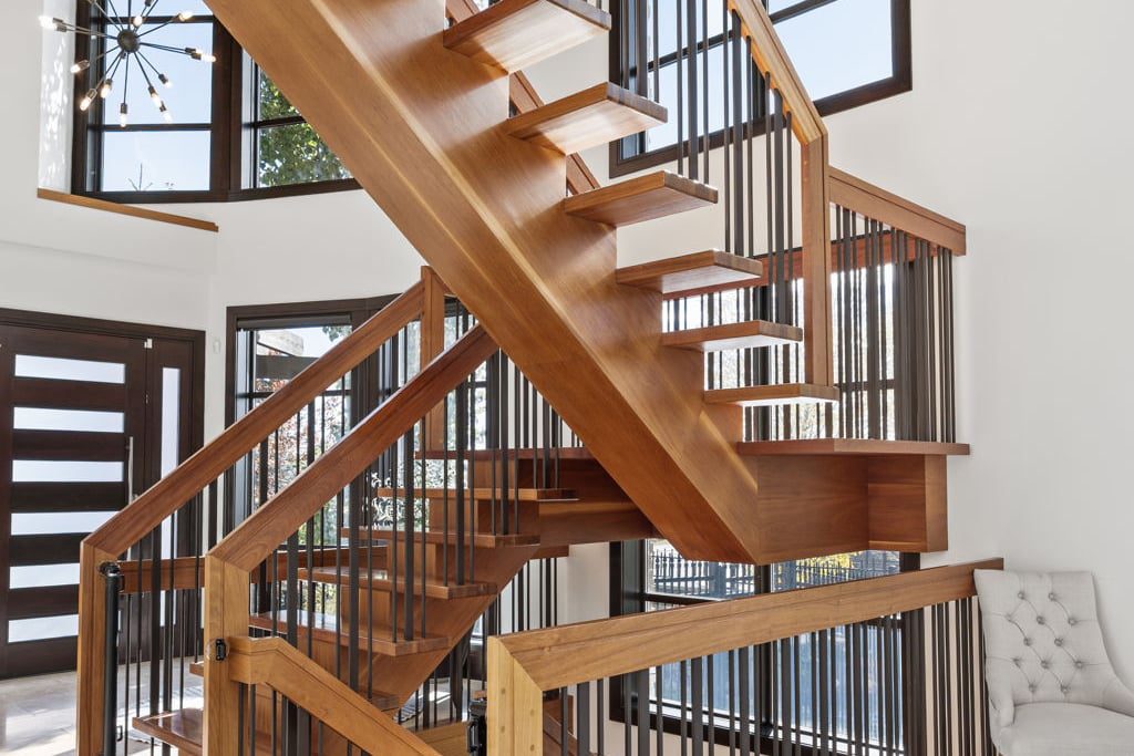 Every element has been meticulously curated. Rosewood cabinetry and solid doors, a Jatoba floating staircase, and heated limestone and hardwood floors create a seamless blend of warmth and refinement. Soaring 10-ft ceilings on the main level and 9-ft ceilings on the lower level enhance light and volume, while Montego linear fireplaces bring contemporary ambiance to the living spaces.