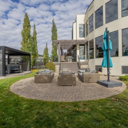 Set in the prestigious community of Aspen Estates, this custom-designed luxury home offers over 6,900 sq. ft. of total living space, blending architectural artistry with everyday comfort. From the moment you step into the dramatic 19-ft foyer—defined by its striking steel-framed glass wall—you’ll sense the sophistication and craftsmanship that define this exceptional residence.