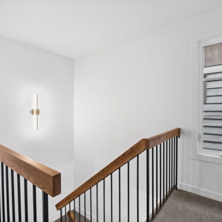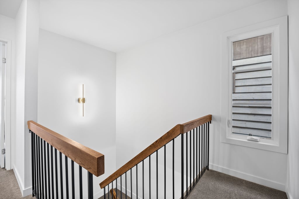 Upstairs, the primary bedroom feels like its own retreat with a walk-in closet, ensuite, and a private balcony—an ideal spot for morning coffee or winding down before bed. Two additional bedrooms, including one with its own balcony, share a well-appointed full bathroom.