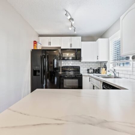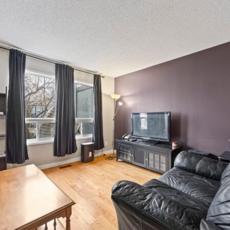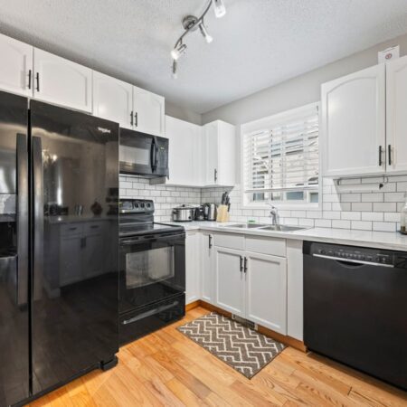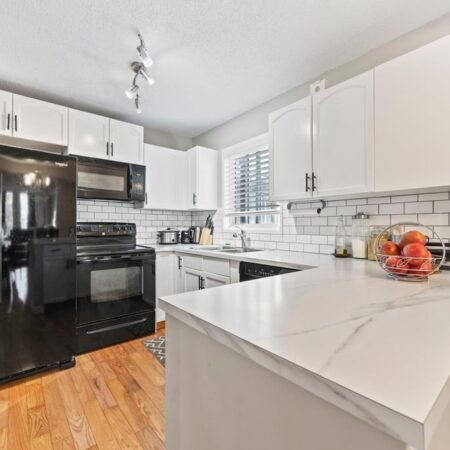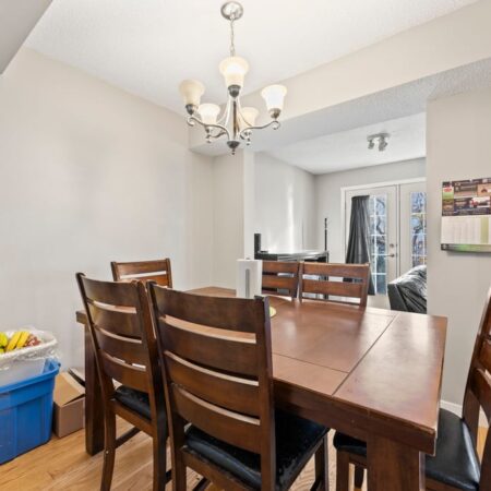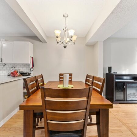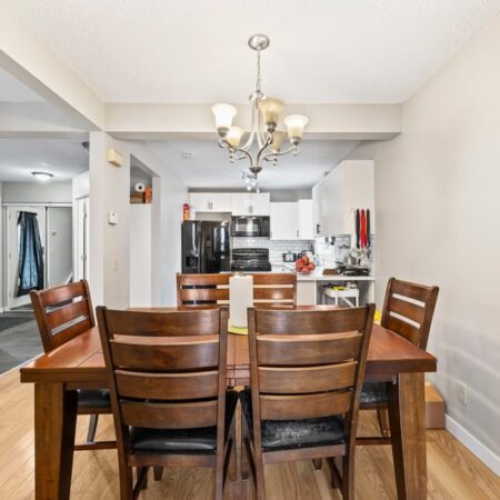 Bright, inviting, and perfectly located, this 3-bedroom townhouse offers a comfortable, connected lifestyle on Calgary’s westside. The main floor features engineered hardwood throughout and an open, functional layout that makes daily living easy. The kitchen and dining areas flow seamlessly together, featuring durable Arborite countertops, a timeless subway tile backsplash, ample cabinetry, and a sunny window above the sink—creating a cheerful space to cook and gather.