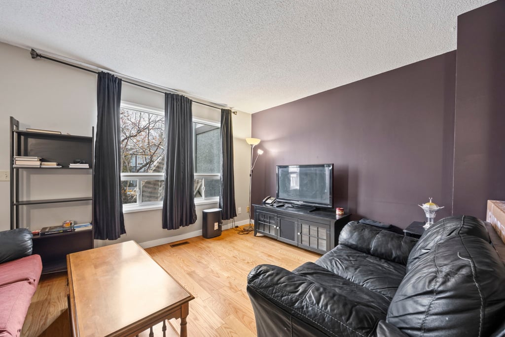 Bright, inviting, and perfectly located, this 3-bedroom townhouse offers a comfortable, connected lifestyle on Calgary’s westside. The main floor features engineered hardwood throughout and an open, functional layout that makes daily living easy. The kitchen and dining areas flow seamlessly together, featuring durable Arborite countertops, a timeless subway tile backsplash, ample cabinetry, and a sunny window above the sink—creating a cheerful space to cook and gather.
