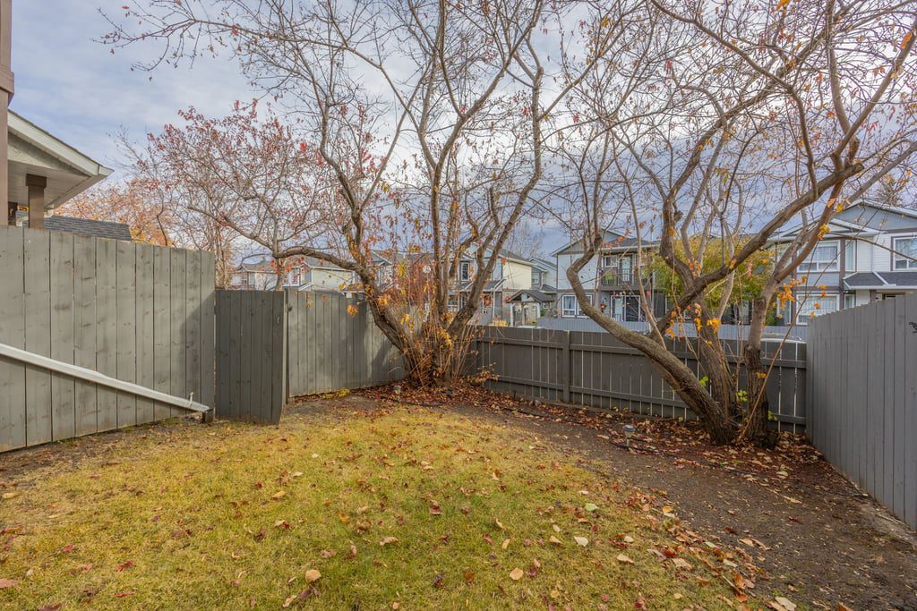 Off the living room, French doors open to your private backyard with a small deck, patio, and grass area—ideal for morning coffee, summer barbecues, or simply relaxing outdoors. Upstairs, you’ll find three spacious bedrooms and a full bathroom, while a convenient half bath on the main floor adds everyday practicality. Two assigned parking stalls (#91 and #94) complete the home.